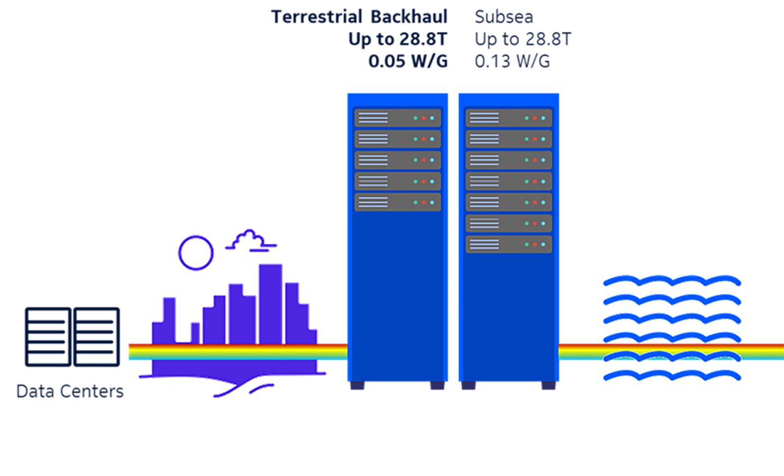 One key application is backhauling data center traffic at Submarine Landing Terminal Equipment sites (SLTE). Embedded transponders are used to maximize fiber capacity from the wet plant. In